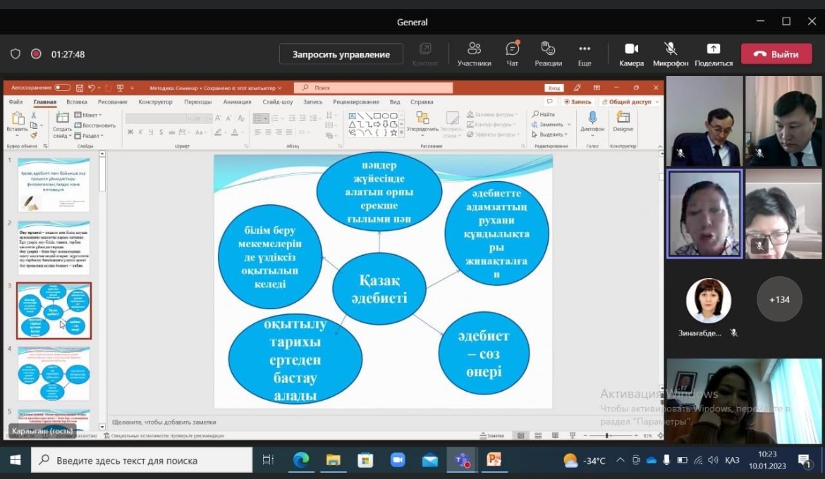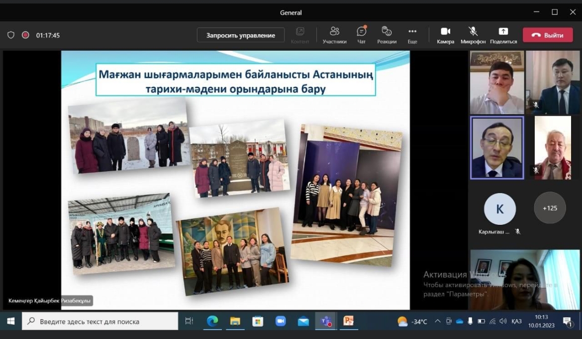 10 января 2023 года в вебинаре «Анализ эффективности применения инновационных методов и технологий в учебном процессе университета», организованном филологическим факультетом Евразийского национального университета имени Л.Н. Гумилева, в качестве работодателя принял участие заведующий кафедрой казахской и русской филологии, доктор философии (PhD), доцент Алимбаев А. Е., который, участвуя в дискуссии, поделился мнением об организации учебного процесса в вузе.