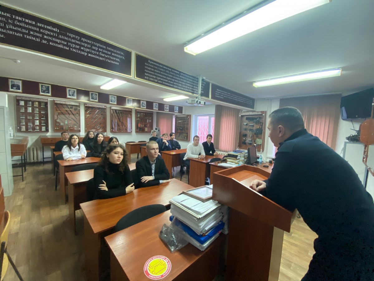 1 февраля 2023 года на платформе криминалистического учебно-лабораторного комплекса старшим преподавателем кафедры юридических дисциплин Абельдиновым А.С. реализована профориентационная работа в формате встречи с выпускниками колледжа ЕАГИ специальности «Правоведение».