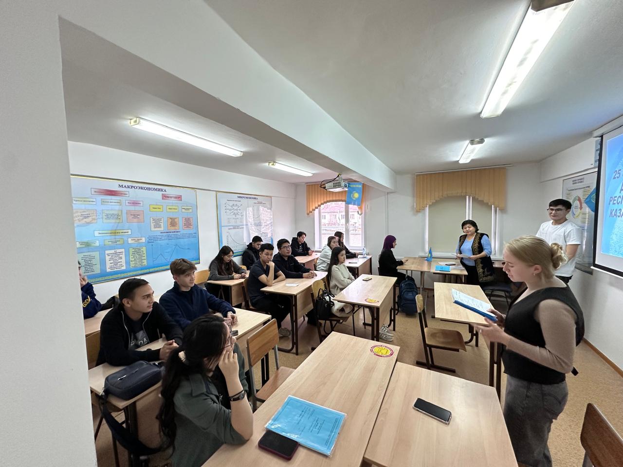 23 октября 2023 года куратор Айтқұлова А. М. для студентов академических групп ЮҚ-21-01, ЮҚ-21-02 (3 курс, образовательная программа «Юриспруденция») провела кураторский час, посвященный Дню Республики, в ходе которого была проанализирована Декларация о государственном суверенитете Казахской ССР, принятая 25 октября 1990 года, и рассмотрены этапы исторического развития нашей страны.