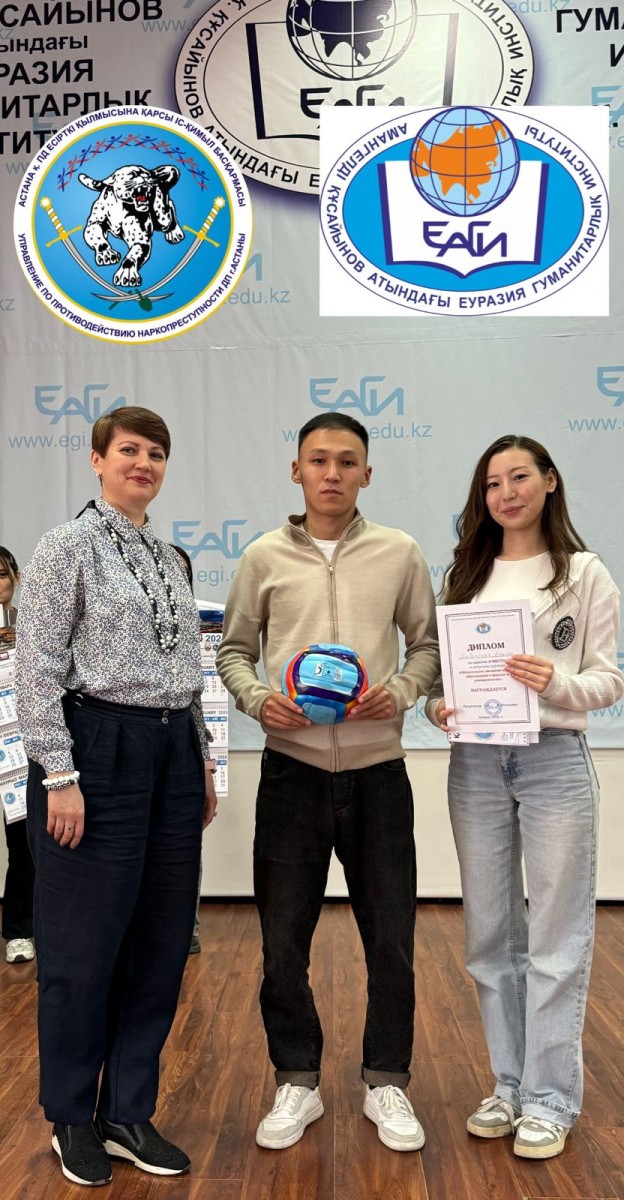 – «Лучший судья» – Нурпиисова Дарина, студент образовательной программы «Иностранный язык: два иностранных языка» (академическая группа ИЯТ-23-01); – «Лучший спикер» – Салимжуаров Гани, студент образовательной программы «Юриспруденция» (академическая группа ЮР-20-01);| – «Самый целеустремленный» – Ауанбай Жандаулет, студент образовательной программы «История» (академическая группа Т-22-01).