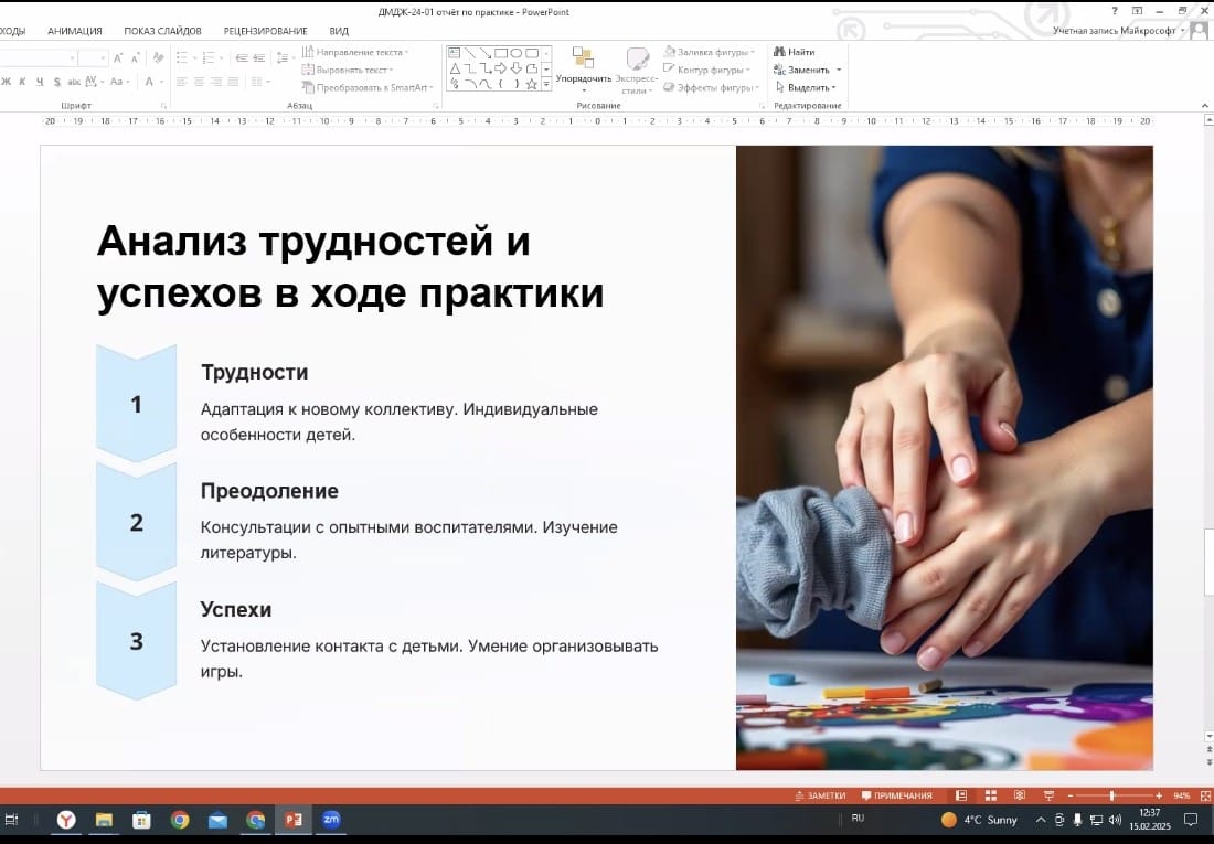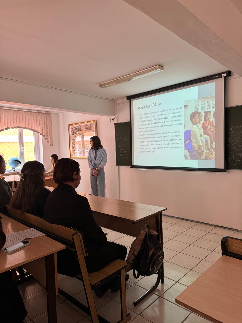 14-15 февраля 2025 года руководители практики кафедры педагогики и истории Болатбекова Н. Ж. и Жармаханова Г. Е. в офлайн и онлайн форматах провели итоговые конференции по практике студентов образовательных программ «Педагогика и методика начального обучения», «Педагогика и психология», «Дошкольное обучение и воспитание», «История». Студенты 1-3 курсов выступили с отчетами, поделились своим опытом, впечатлениями и выводами по итогам прохождения практики.