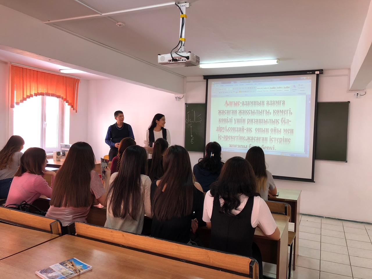 28 февраля 2025 г. куратор кафедры иностранных языков и переводческого дела Сарсенова А.М. провела кураторский час в академической группе ШТ-22-02 (3 курс, образовательная программа «Иностранный язык: два иностранных языка») на тему: «Алғысым шексіз…».