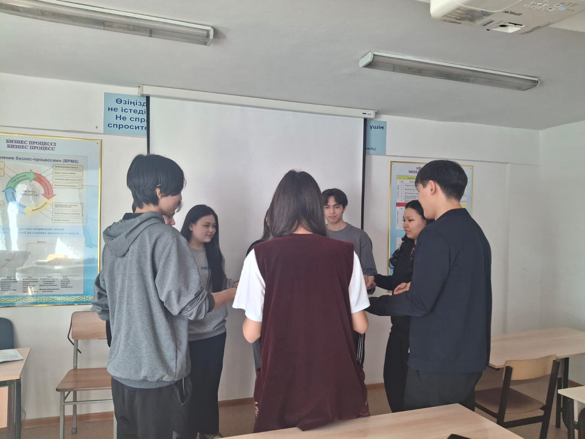 19 марта 2025 г. руководитель психологической службы Евразийского гуманитарного института им. А.К.Кусаинова Мусиев А.Б. провел тренинг «Движение в одном направлении » для студентов академической группы ҚЭТ-24-01 (1 курс, образовательная программа «Финансы»). Цель тренинга: укрепить командный дух и развить навыки эффективного взаимодействия, направленные на достижение общих целей через совместное участие, доверие и взаимопонимание.
