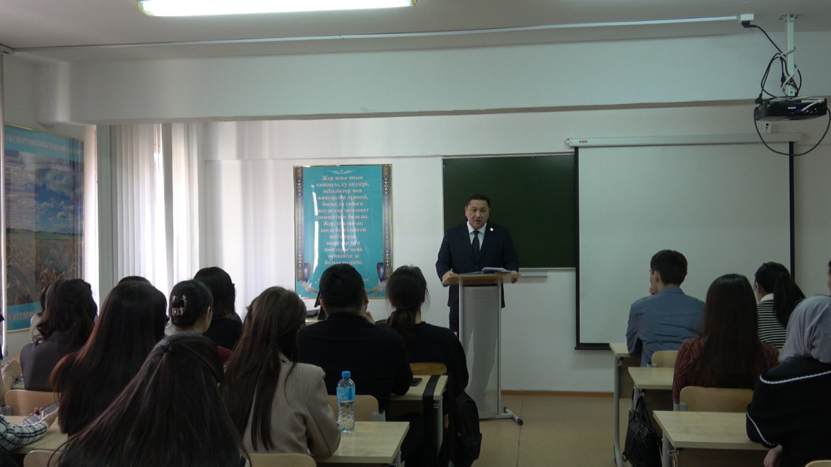 Встреча была организована в рамках мероприятий, посвященных 30-летию Конституции Республики Казахстан и празднованию 30-летия нашего вуза. Гость рассказал о роли Основного Закона РК в развитии стабильности государства. Будущие юристы узнали также о специфике работы в органах прокуратуры и возможностях профессионального роста в сфере права.