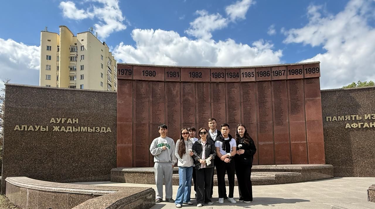 2 мая 2025 года студенты академической группы ЮҚ-24-01 (1 курс, образовательная программа «Юриспруденция») совместно с куратором Тортаевой А.Э. посетили Мемориал воинам-интернационалистам, погибшим в Афганистане. Студенты минутой молчания почтили память погибших за безопасность и благополучие страны, а также возложили цветы к памятнику.