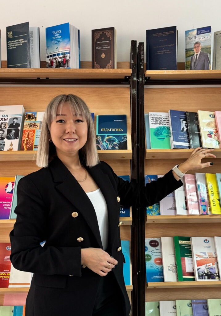 Учёная, академическая степень: магистр педагогических наук Должность: старший преподаватель Образование: Евразийский гуманитарный институт: 5В011900 – «Иностранный язык: два иностранных языка», учитель английского